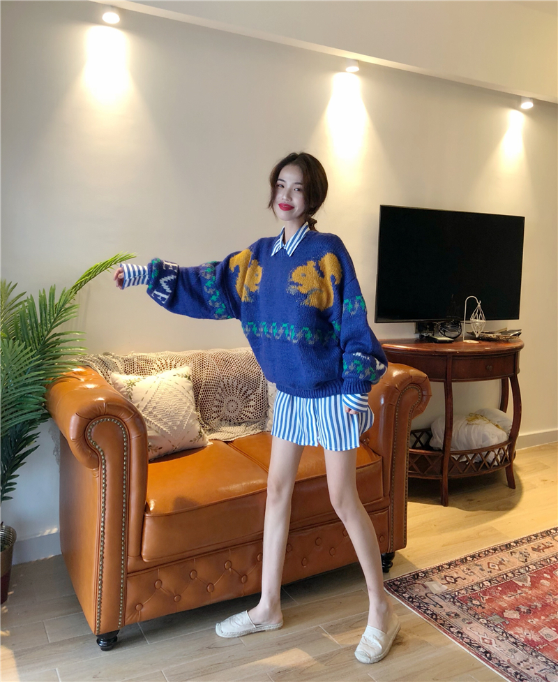 / 2018秋季新款女裝百搭bf風條紋襯衣早秋套頭毛衣韓版港風時尚套裝