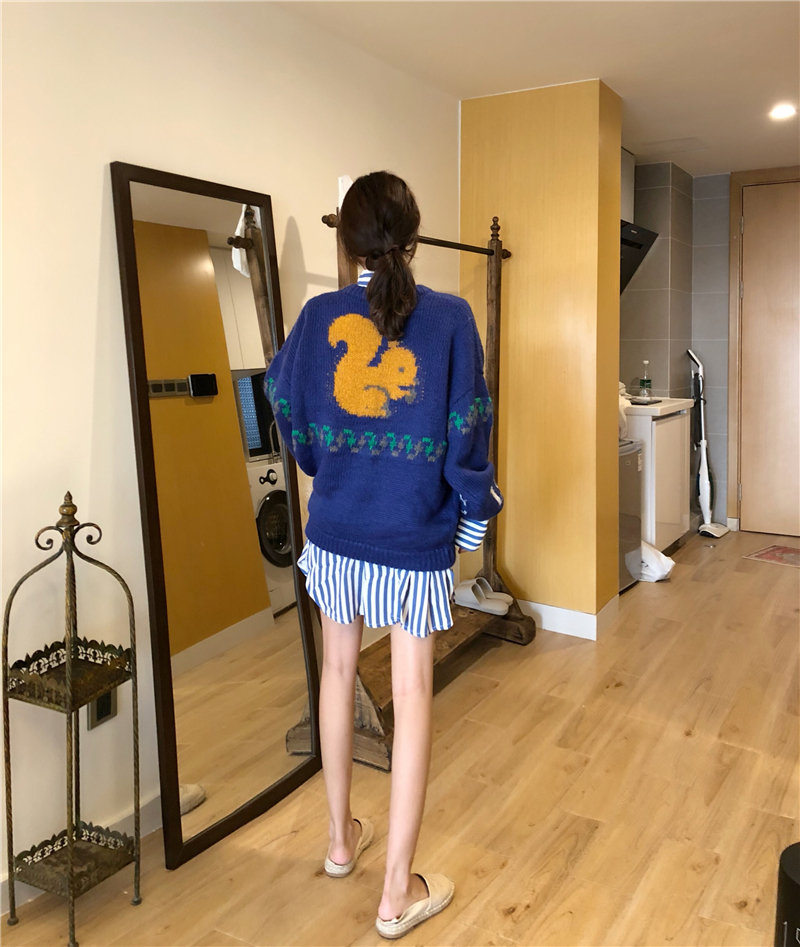 2018秋季新款女裝百搭bf風條紋襯衣早秋套頭毛衣韓版港風時尚套裝