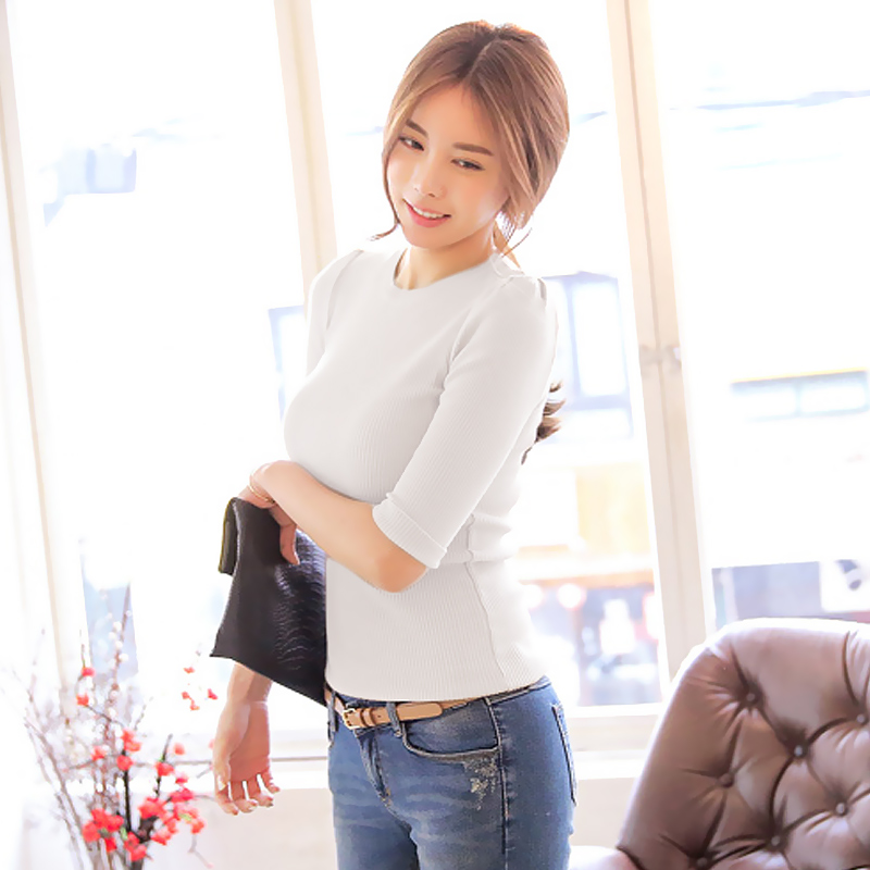/ 中袖圓領短款針織衫女 秋季套頭打底針織衫毛衣女顯瘦毛衣女外套