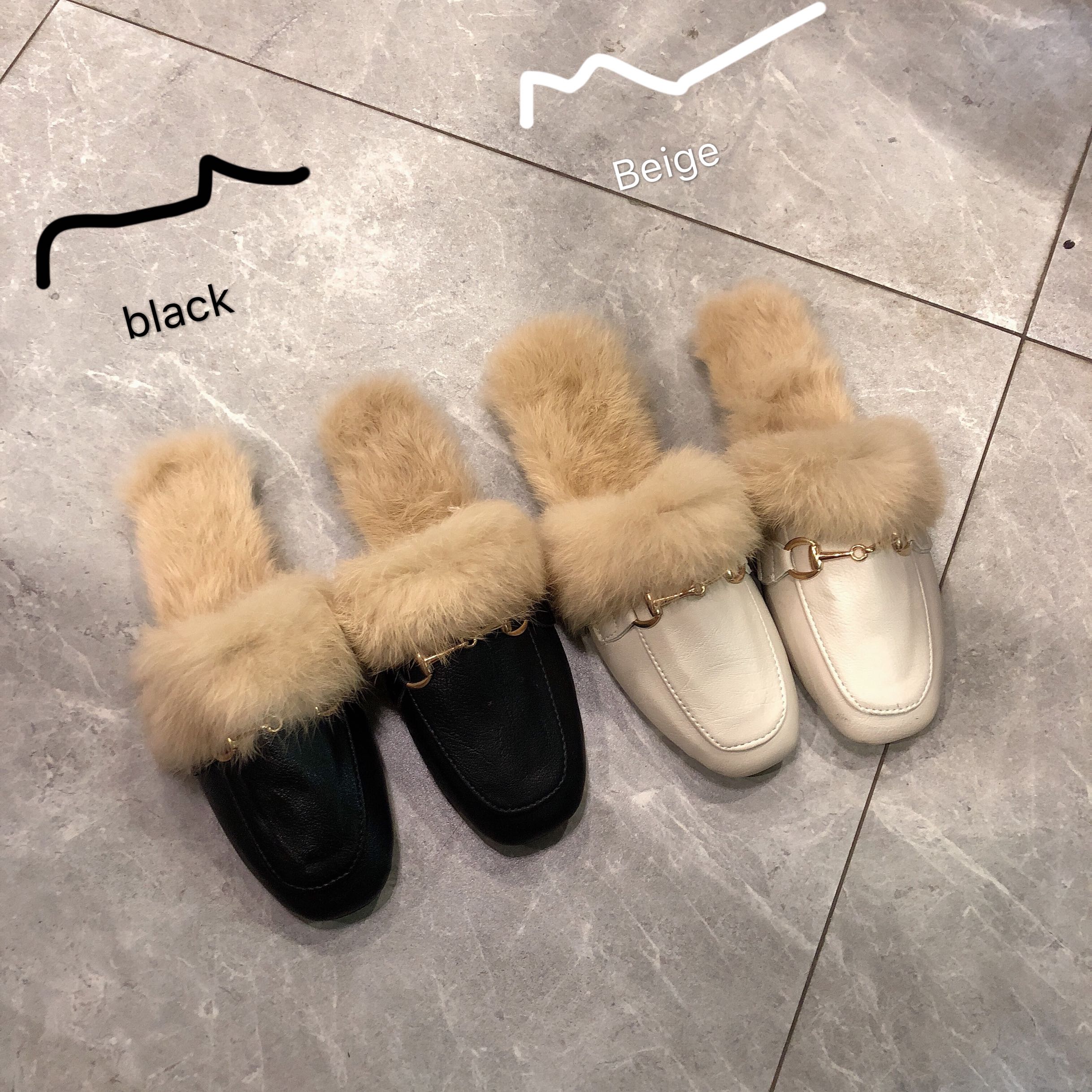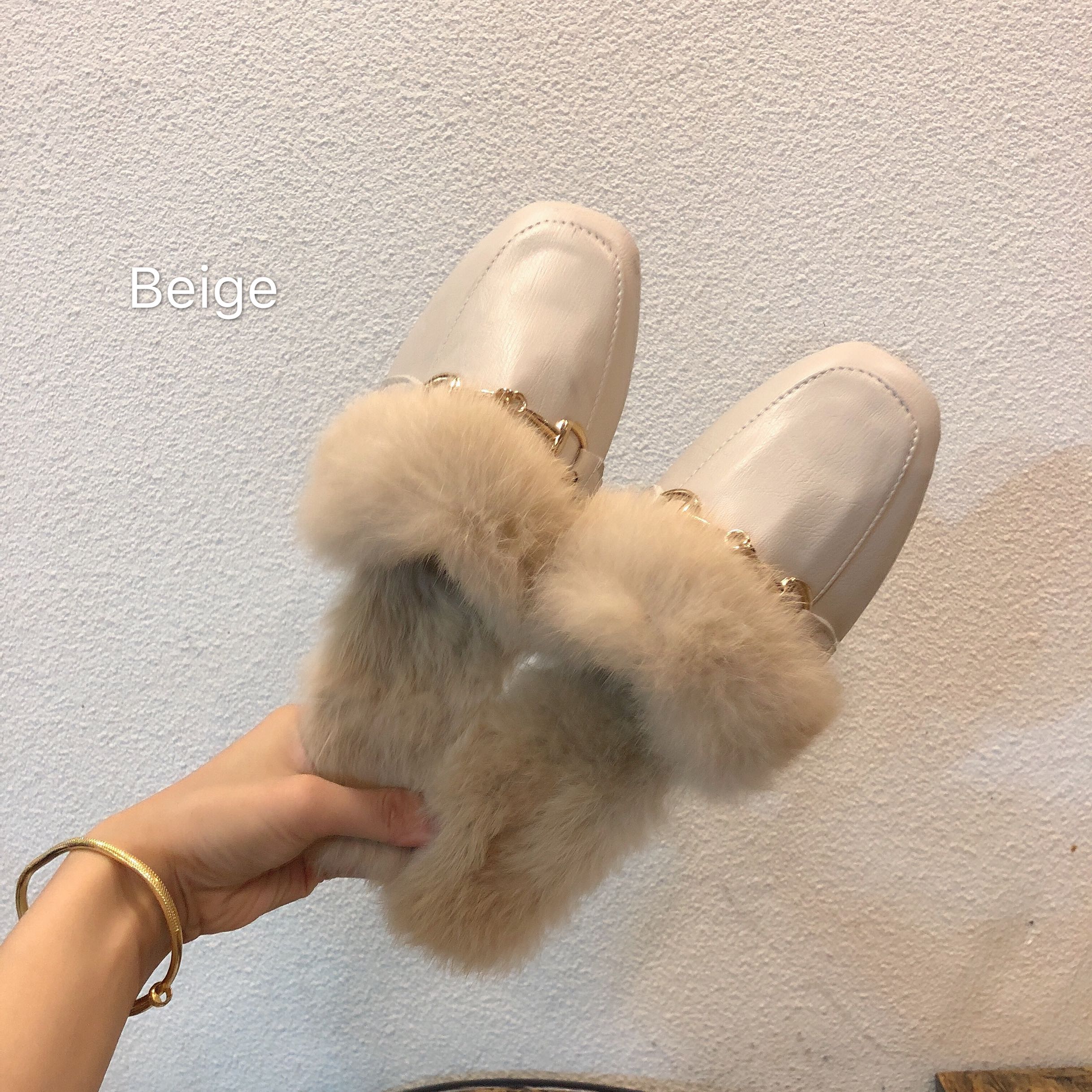 / 韓國早秋新款時尚秋季百搭復古方頭一杠金屬鏈條毛毛鞋涼鞋拖鞋女