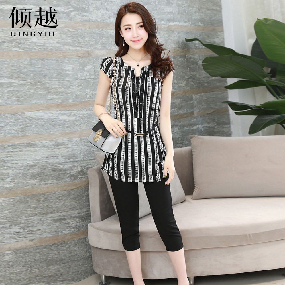 傾越時尚套裝女夏季七分褲2017夏裝新款女裝韓版氣質職業兩件套潮