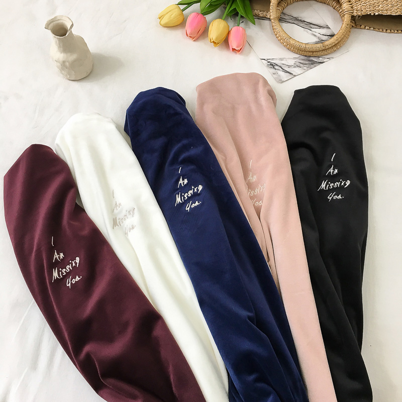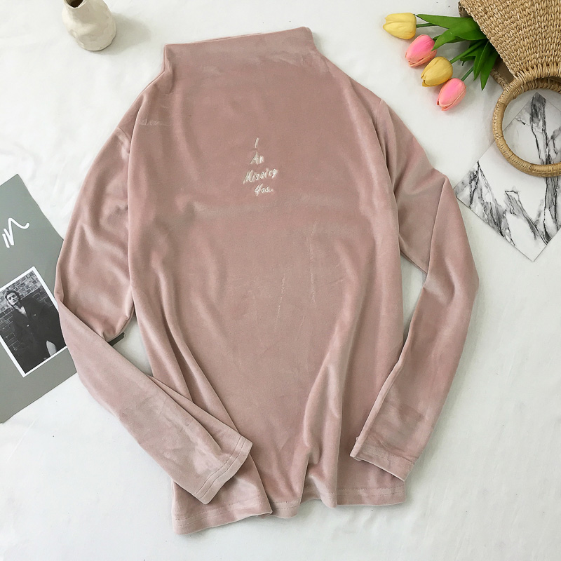 / 糖果色字母刺繡小高領打底衫秋裝女2018新款氣質絲絨修身T恤上衣