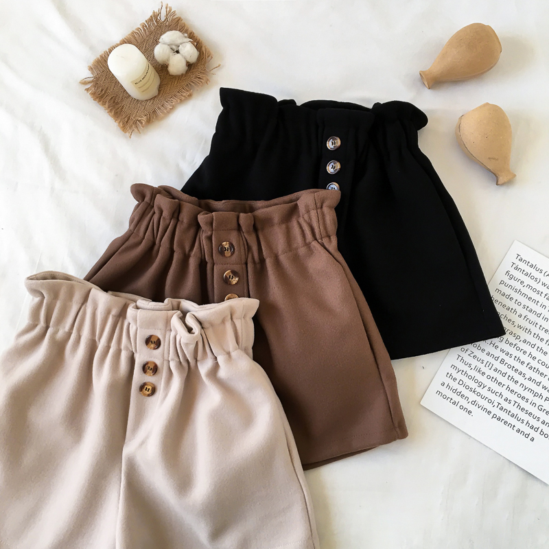 / 松緊高腰休閑短褲女秋冬裝2018新款學生韓版寬松顯瘦直筒靴褲子潮