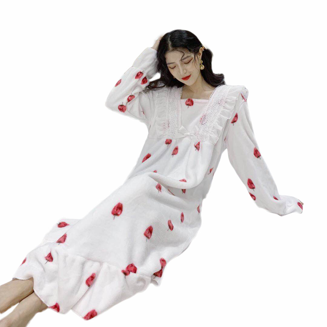 / 秋冬2018新款套裝時尚法蘭絨荷葉邊百搭睡裙休閑甜美家居服連衣裙