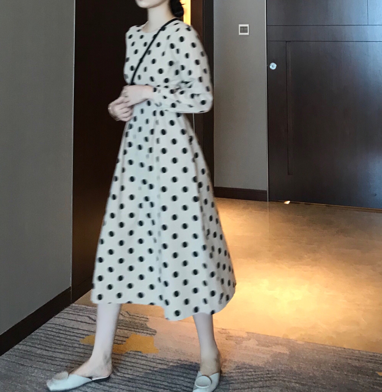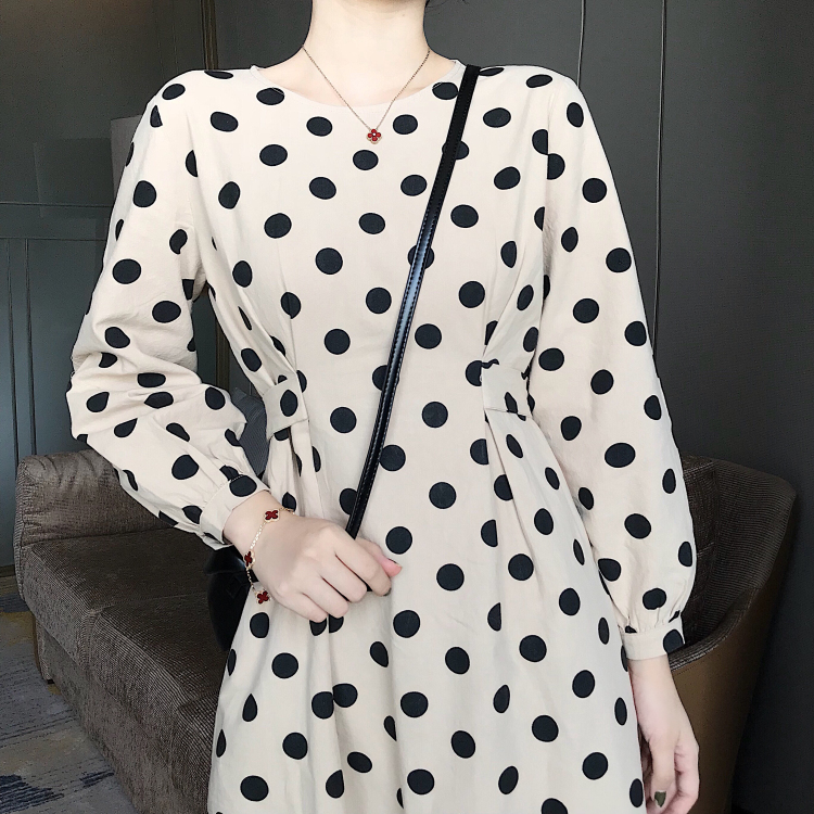復古波點連衣裙2018新款女長袖秋中長款寬松韓版收腰a型顯瘦裙子