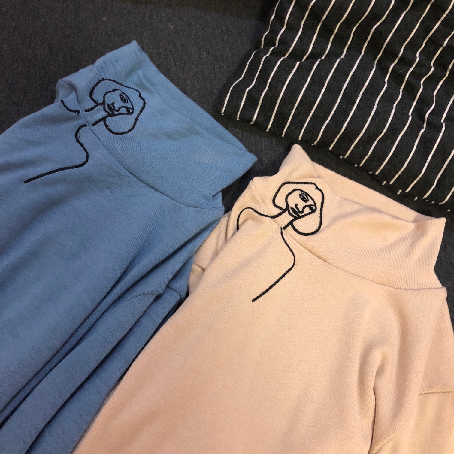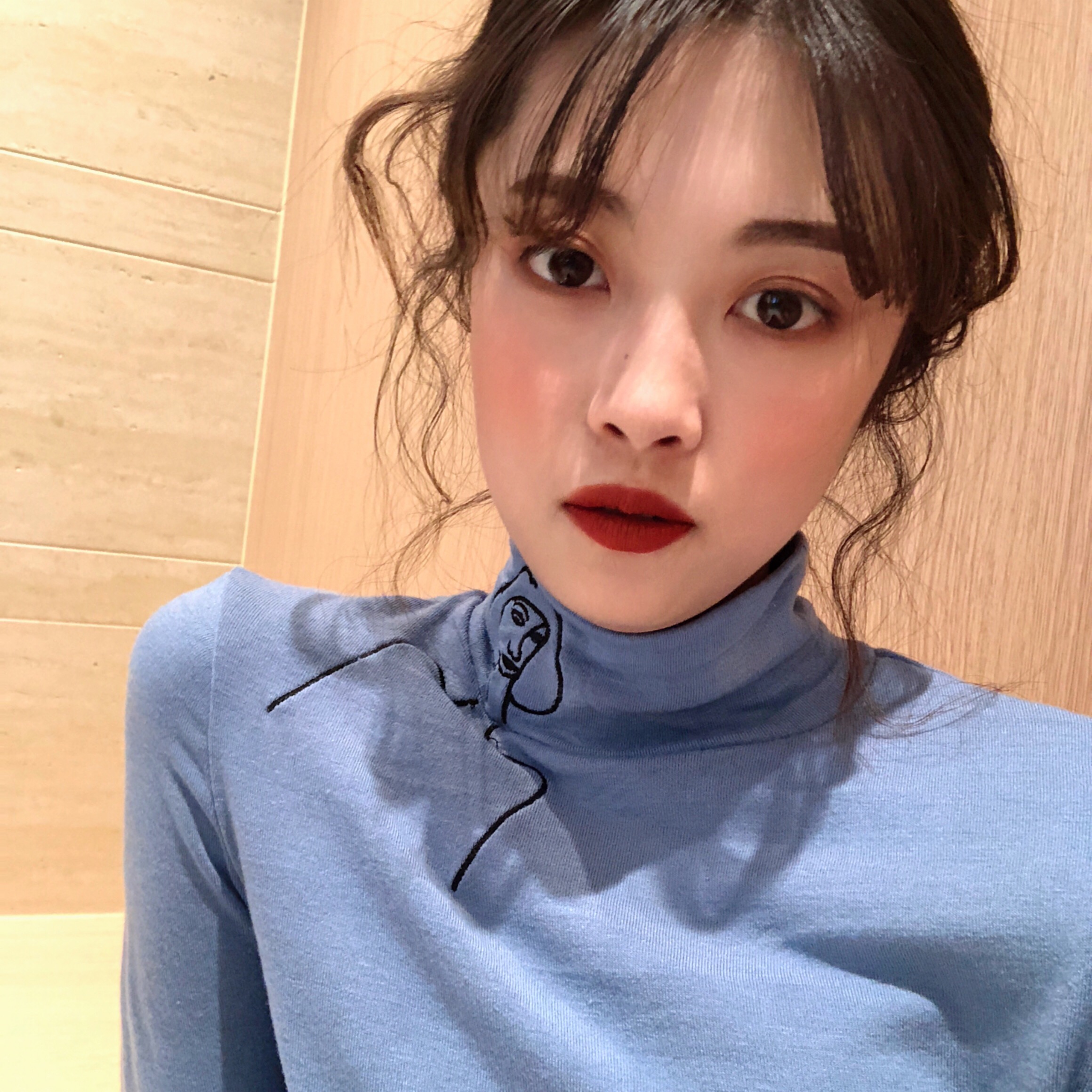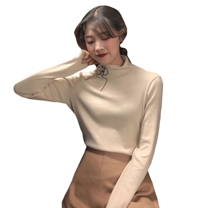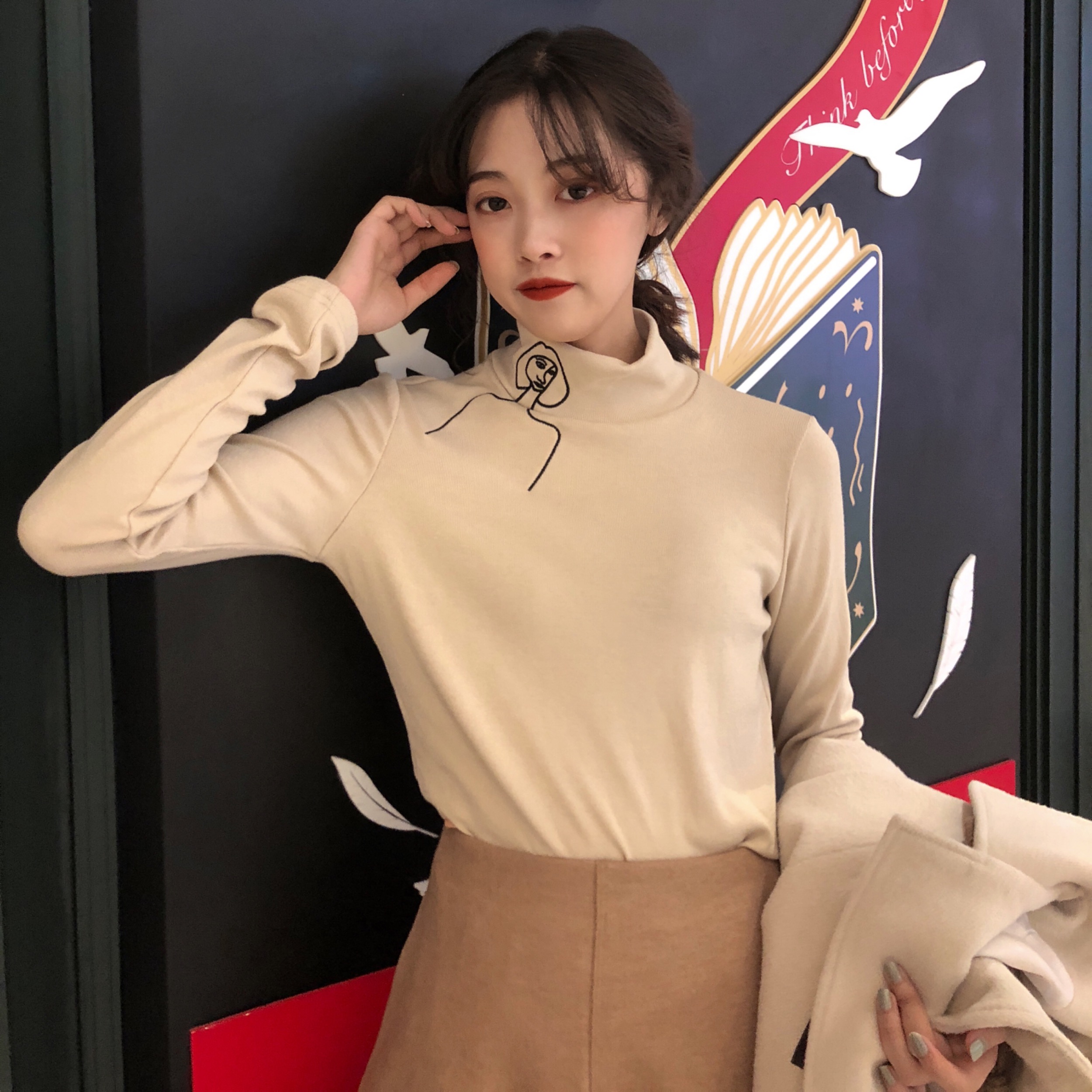 / 秋冬女裝韓版修身顯瘦卡通領口人物半高領長袖打底衫T恤上衣學生