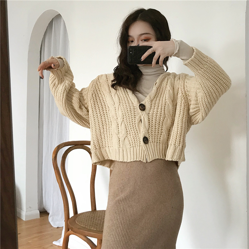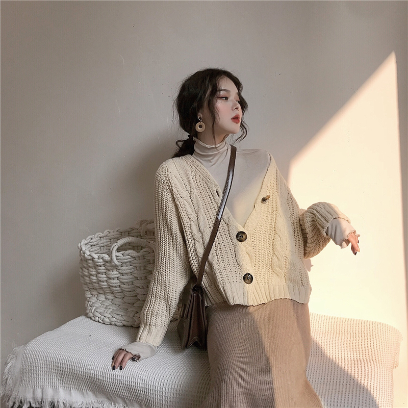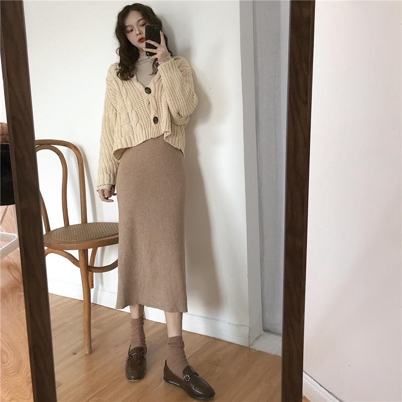 / 秋冬慵懶復古針織麻花開衫百搭高領打底中長款包臀針織裙時尚套裝