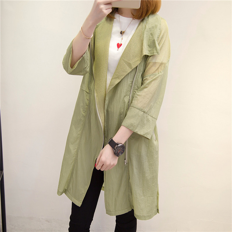 夏裝新款女長款透視防曬衣寬松白色風衣女春季韓版外套百搭潮