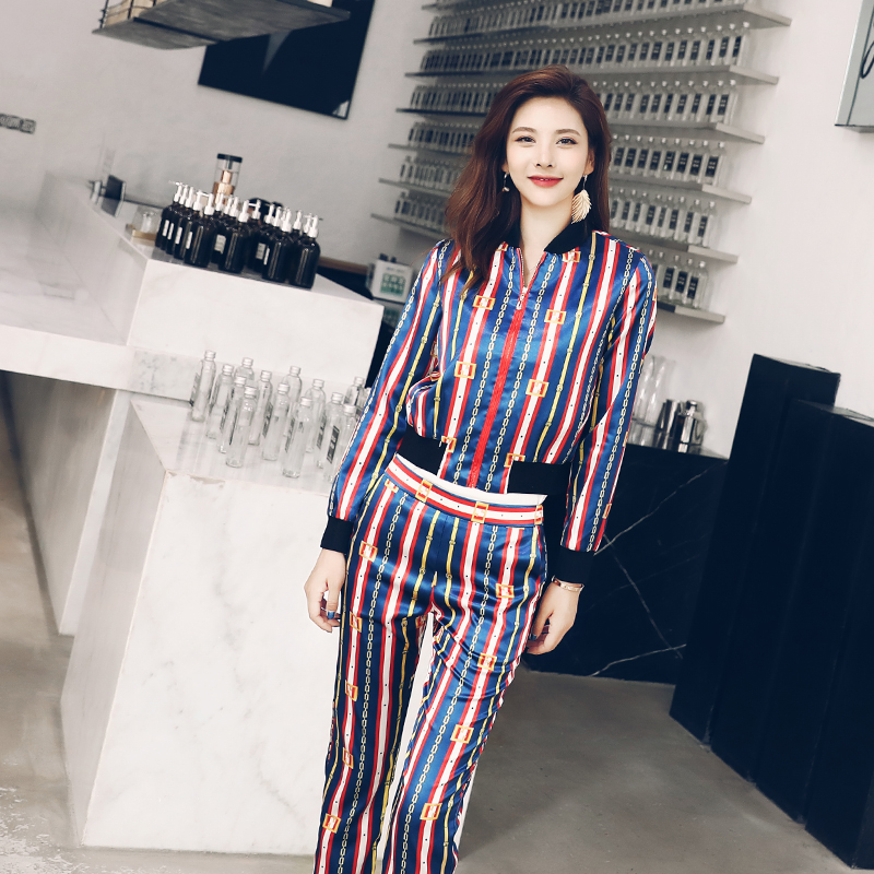 / 運動套裝女秋2018新款九分褲印花休閑長袖夾克俏皮洋氣時尚兩件套