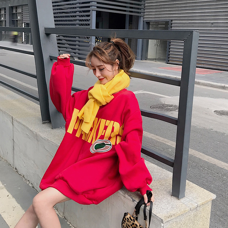 / 2018秋冬新款韓版小清新中長款加厚保暖上衣時尚chic衛衣潮送圍巾
