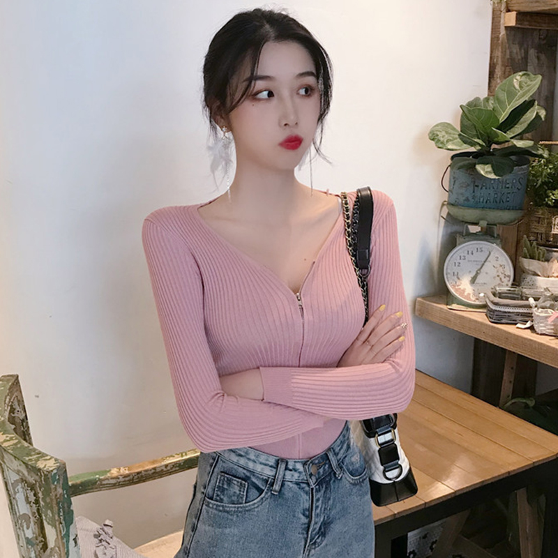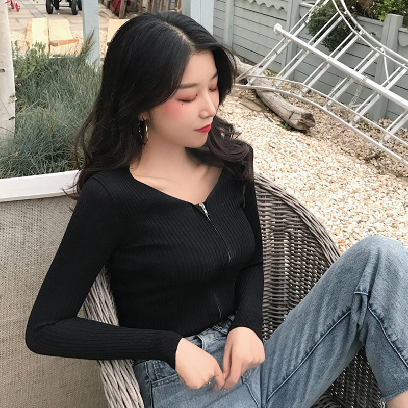 / 修身顯瘦針織開衫女秋冬裝新款黑色長袖短外套學生V領時尚上衣潮