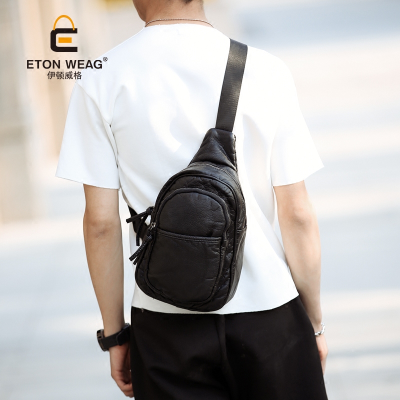 新款韓版男包男士水洗皮胸包軟皮胸包潮流時尚男士胸前包潮