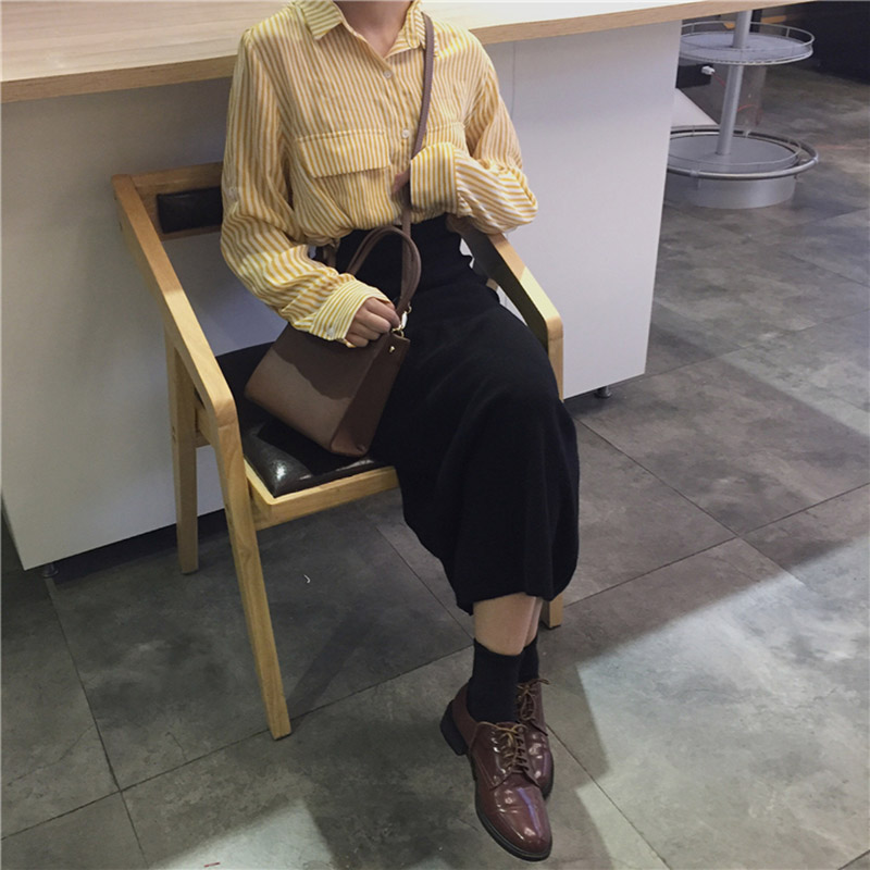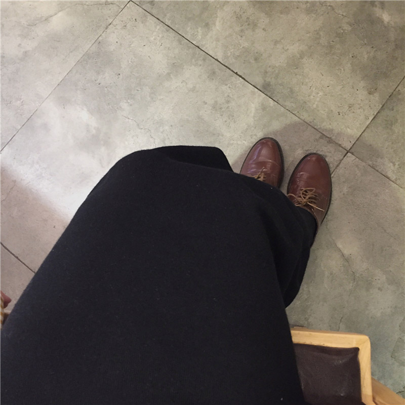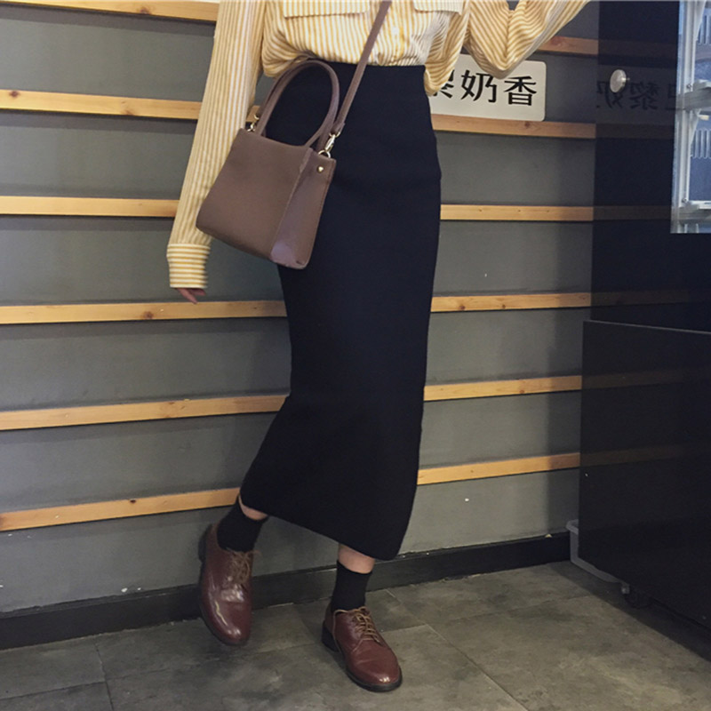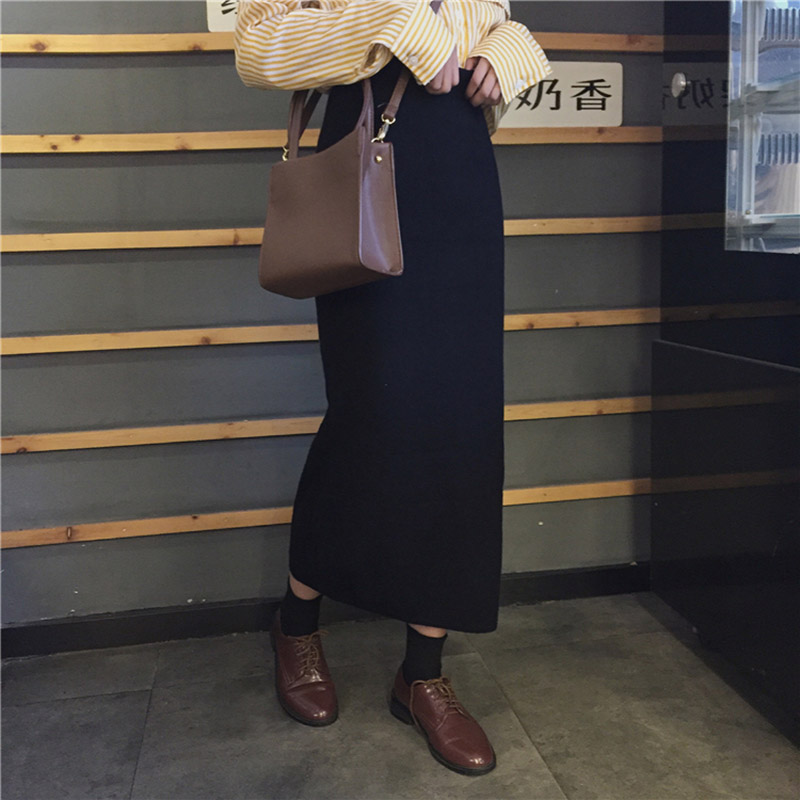/ 復古風黑色半身裙女秋裝新款休閑時尚針織裙學生高腰寬松中長裙子