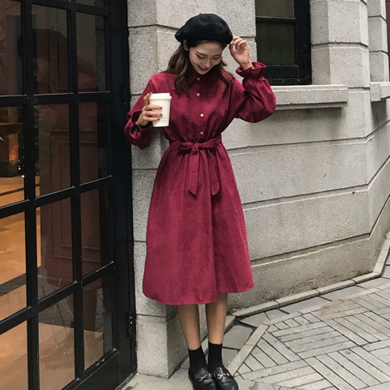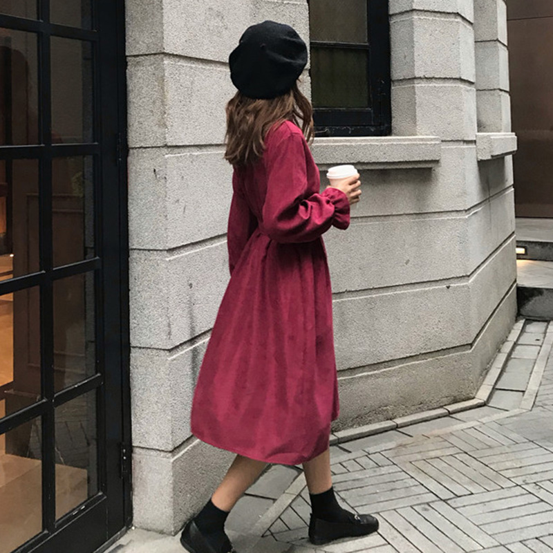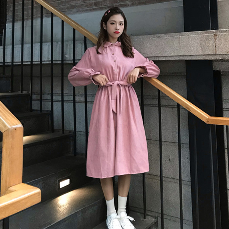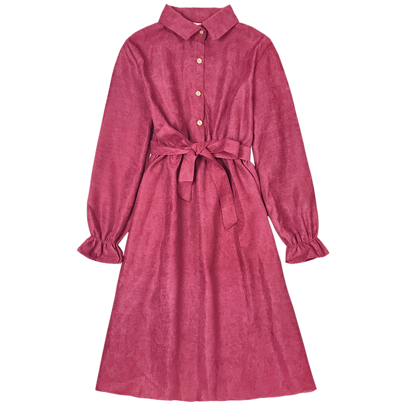 / 蝴蝶結高腰顯瘦A字長裙子秋裝新款法式少女茶歇裙荷葉長袖連衣裙
