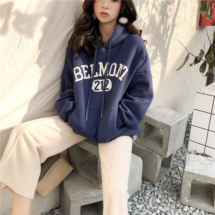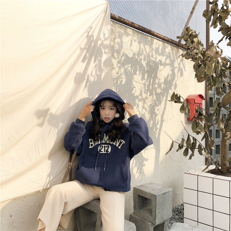 韓版網紅同款衛衣女秋2018新款懶惰風寬松加絨寬松連帽長袖上衣潮