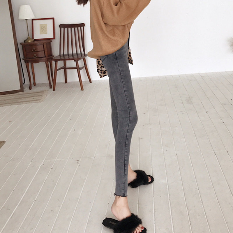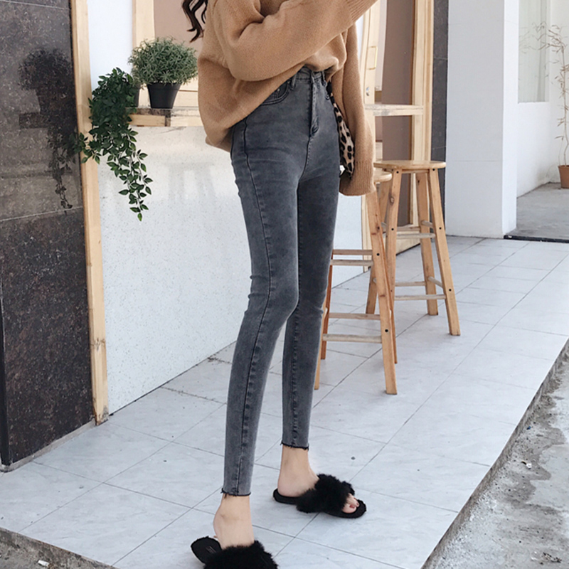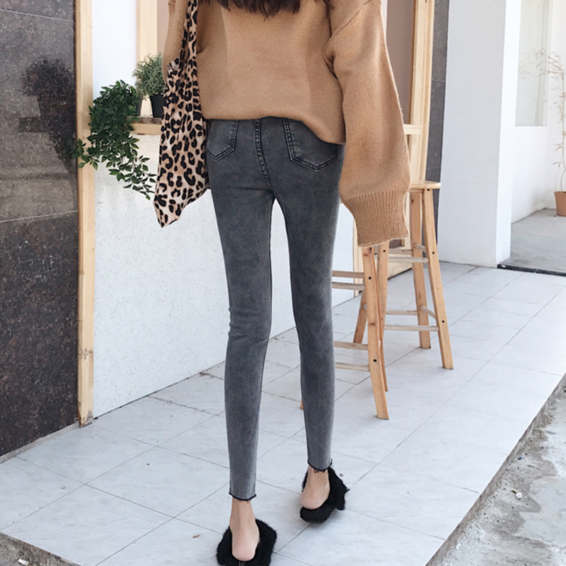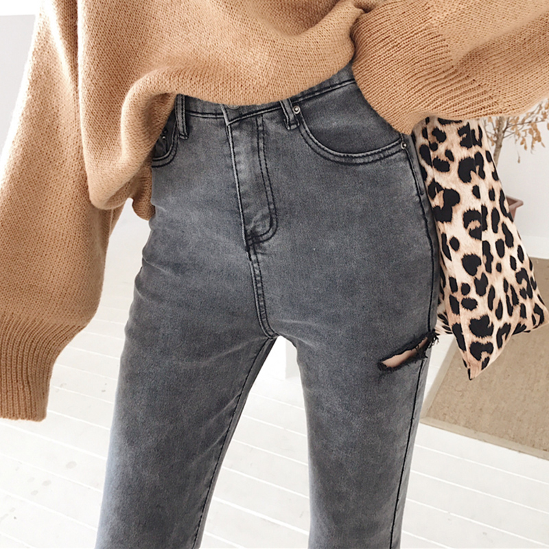秋冬女裝2018新款彈力九分緊身破洞牛仔褲學生高腰顯瘦鉛筆褲子潮