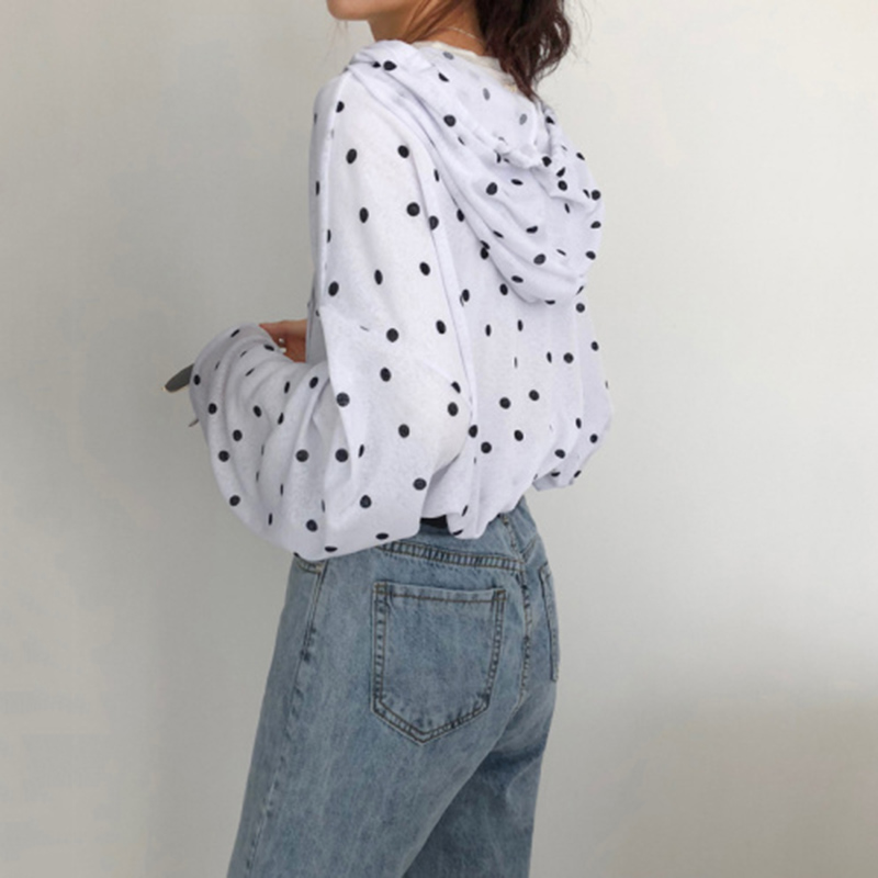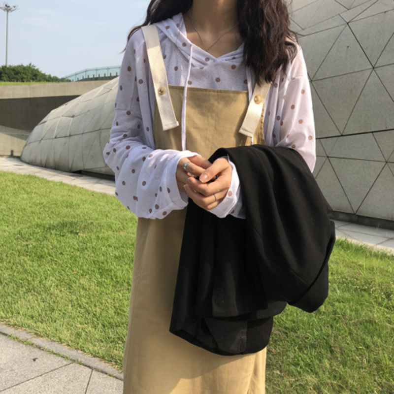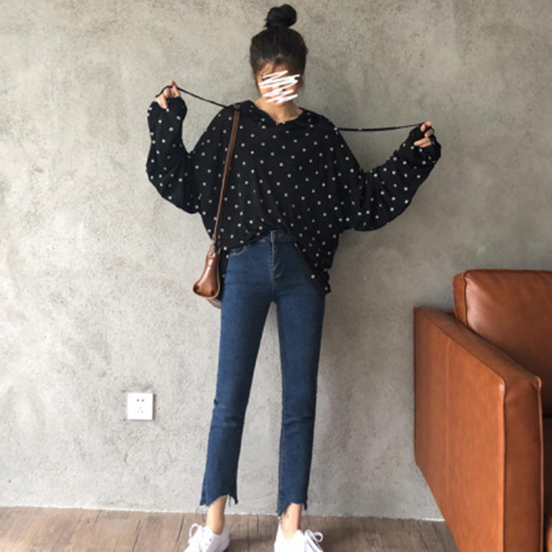 波點T恤女2018秋裝新款韓版學生寬松蝙蝠袖上衣少女時尚連帽衛衣