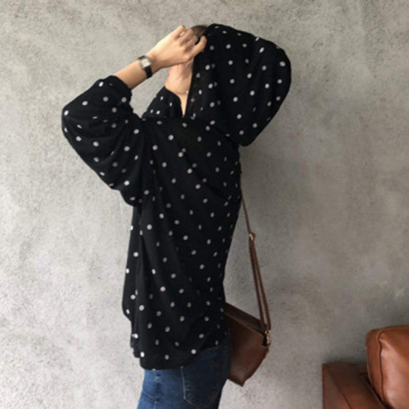 / 波點T恤女2018秋裝新款韓版學生寬松蝙蝠袖上衣少女時尚連帽衛衣