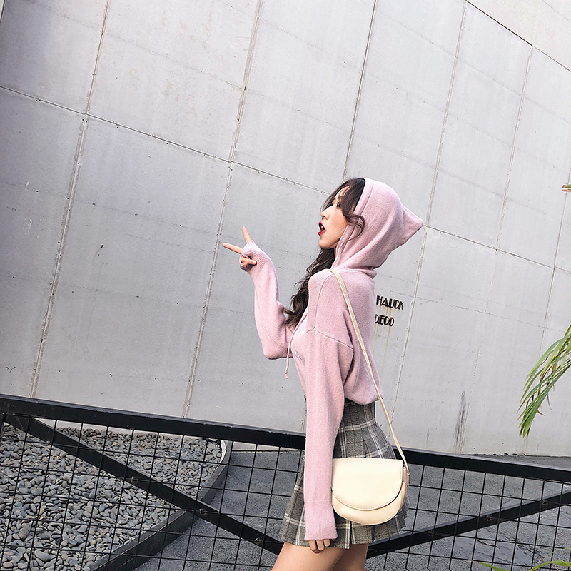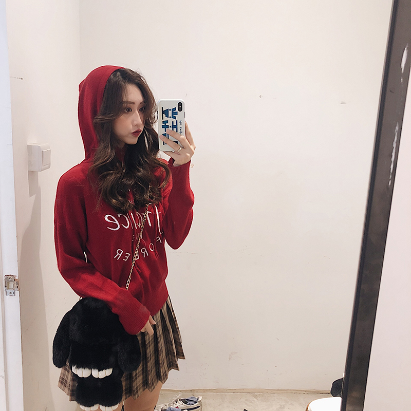 韓版學生百搭針織字母衛衣女2018新款秋季寬松顯瘦連帽套頭上衣潮