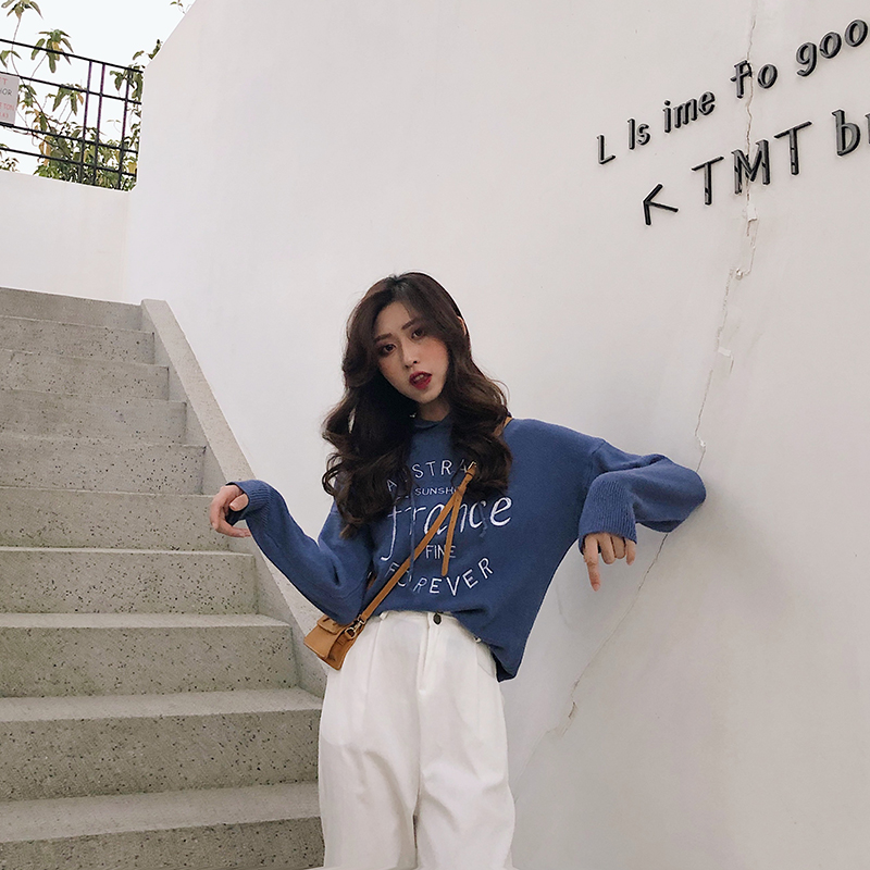 / 韓版學生百搭針織字母衛衣女2018新款秋季寬松顯瘦連帽套頭上衣潮