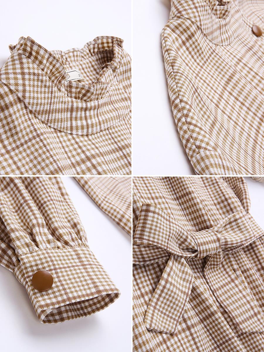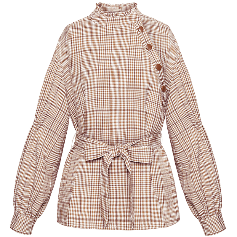 MG小象格子襯衫女長袖心機上衣設計感冬季2018新款蝴蝶結chic襯衣