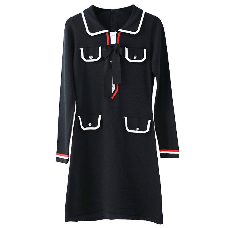 / 歐洲站小清新名媛學院風港味a字裙時尚針織連衣裙秋裝女2018新款