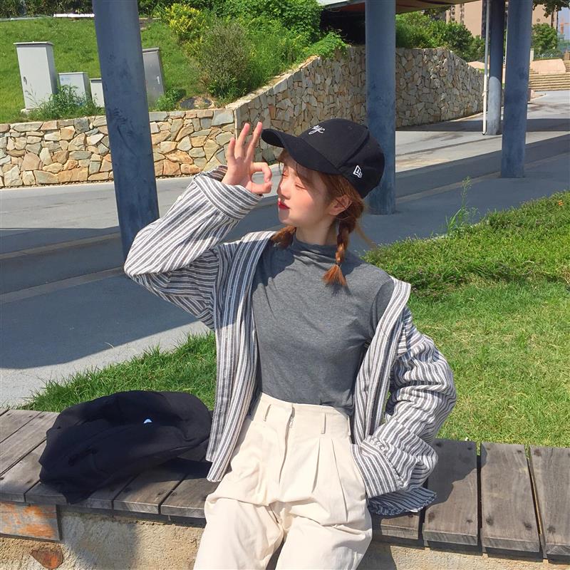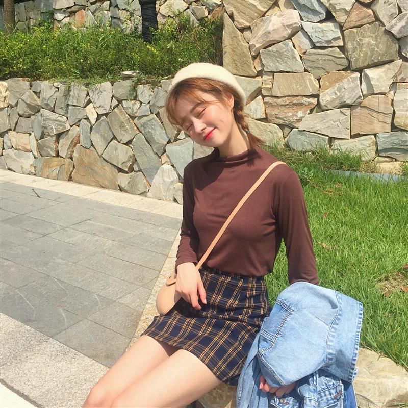2018新款秋季女裝韓版純色百搭修身顯瘦打底衫長袖T恤上衣學生潮
