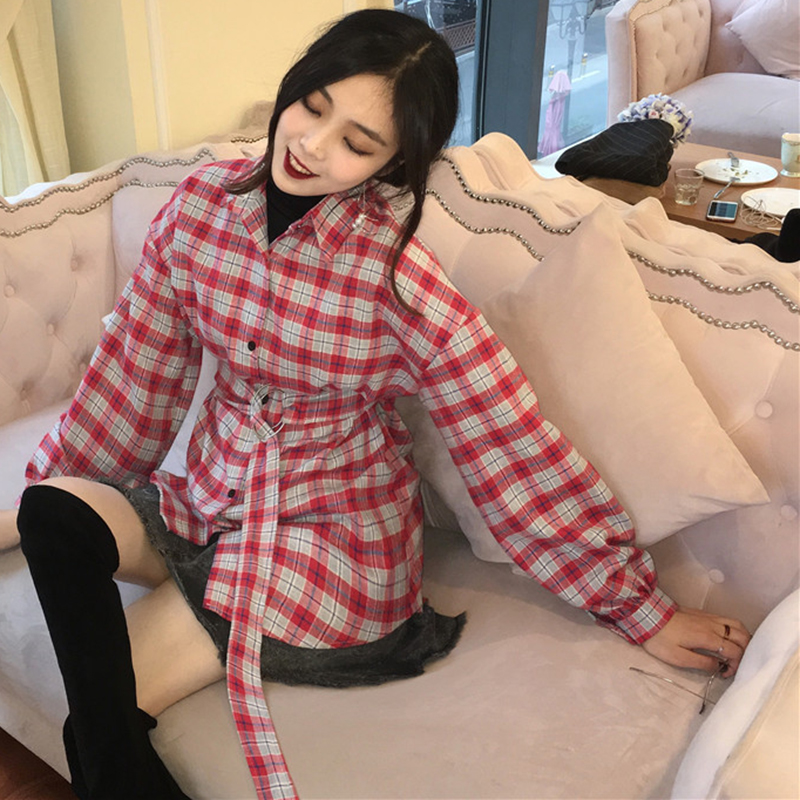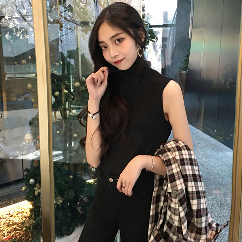/ 御姐套裝女秋冬新款高領黑色修身打底背心學生復古風格子襯衫上衣