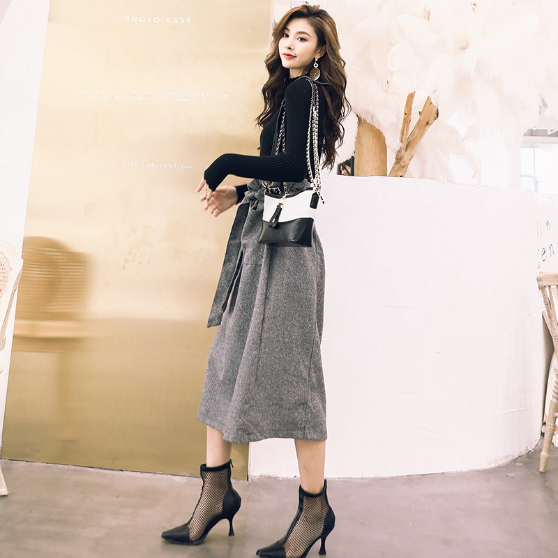 名媛毛衣兩件套女針織衫上衣2018秋季新款韓版高腰半身裙時尚套裝