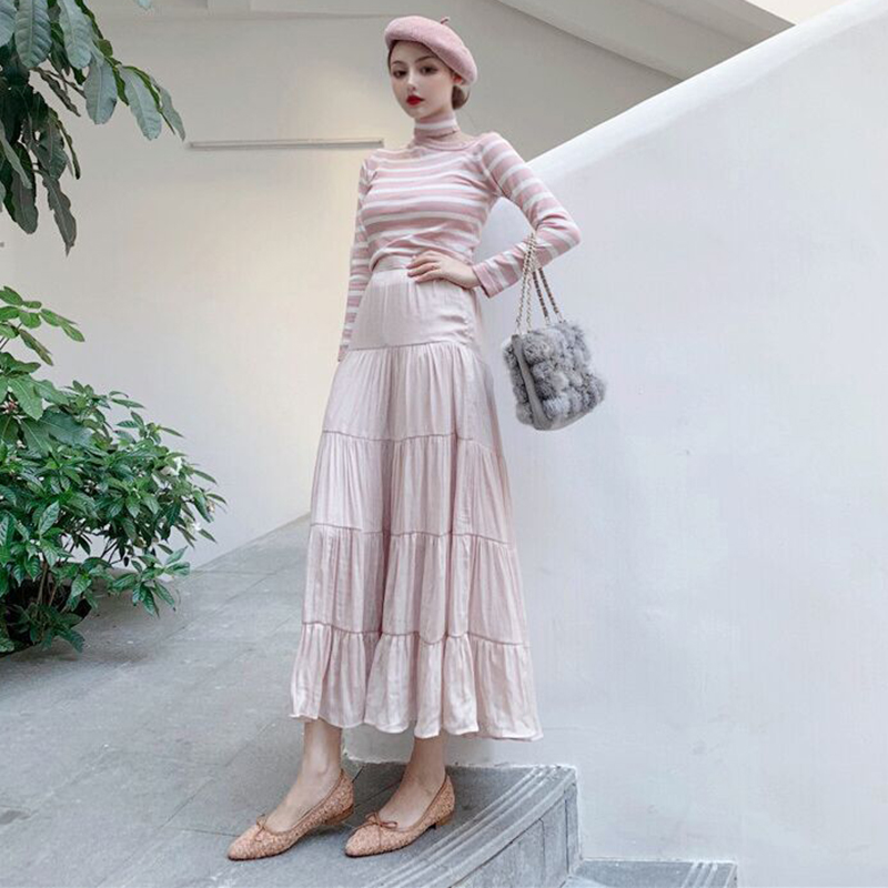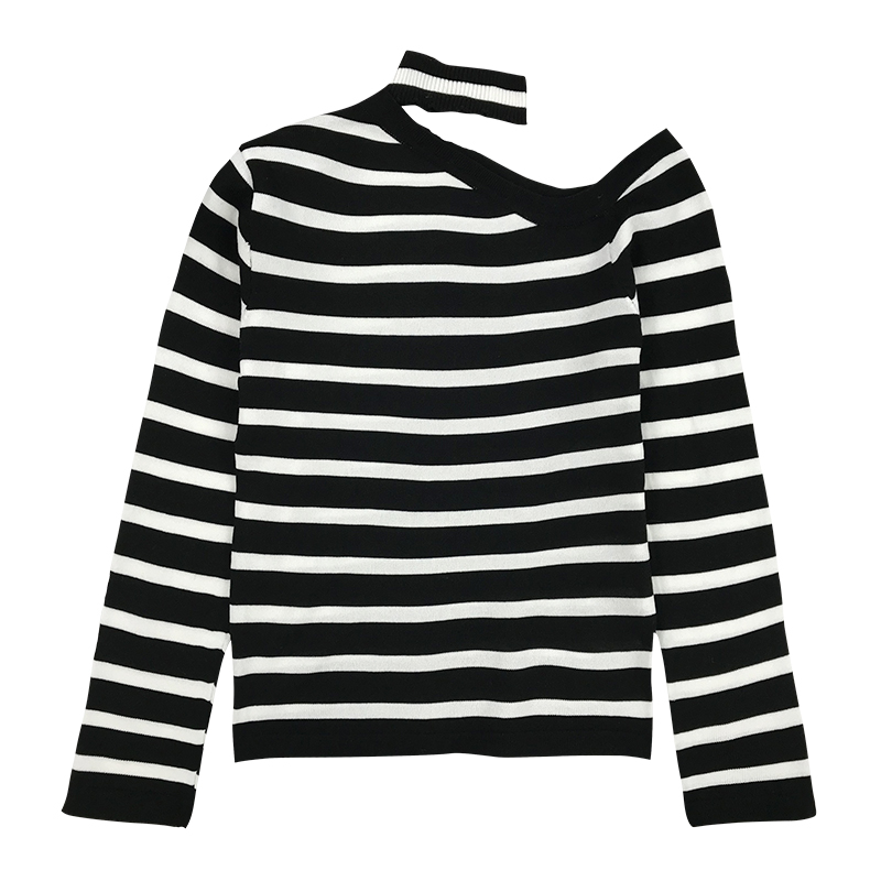 / 心機掛脖露肩條紋長袖針織衫女秋冬裝2018新款時尚修身打底薄毛衣