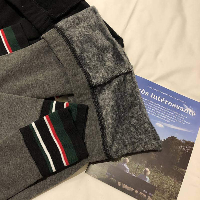 / 秋冬女裝韓版拼色加絨加厚保暖修身打底褲外穿休閑褲長褲學生褲子