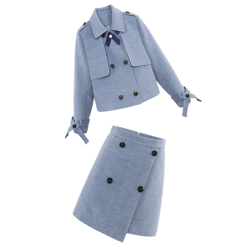 MG小象冬季短款毛呢外套女不規則高腰半身裙2018新款復古呢子大衣