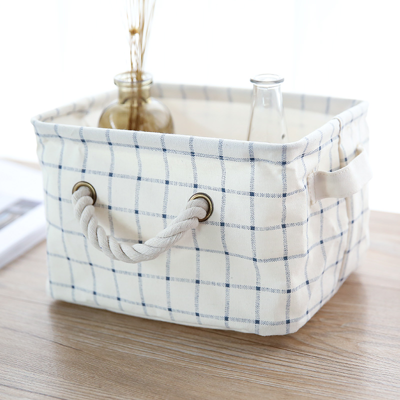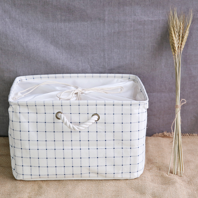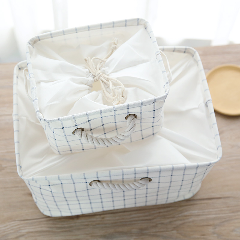 家居用品收納籃抽屜盒束口收納箱素雅藍方格日式收納筐