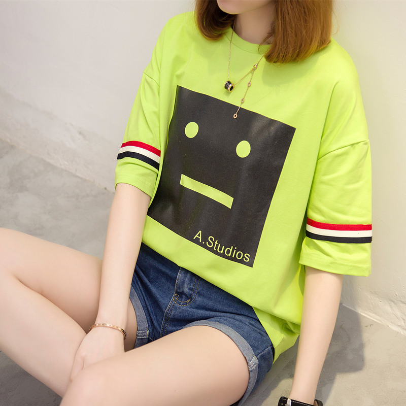 / 夏裝新款女裝條紋t恤女短袖韓版卡通寬松打底體恤衫百搭上衣