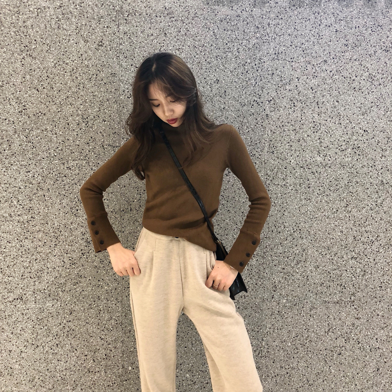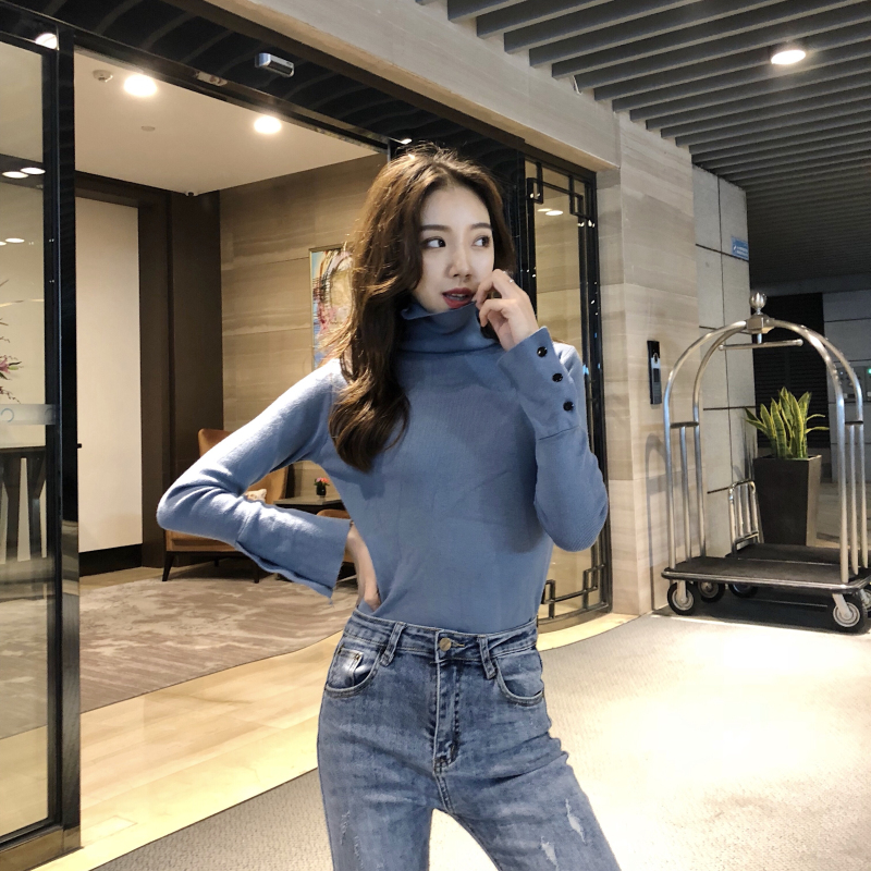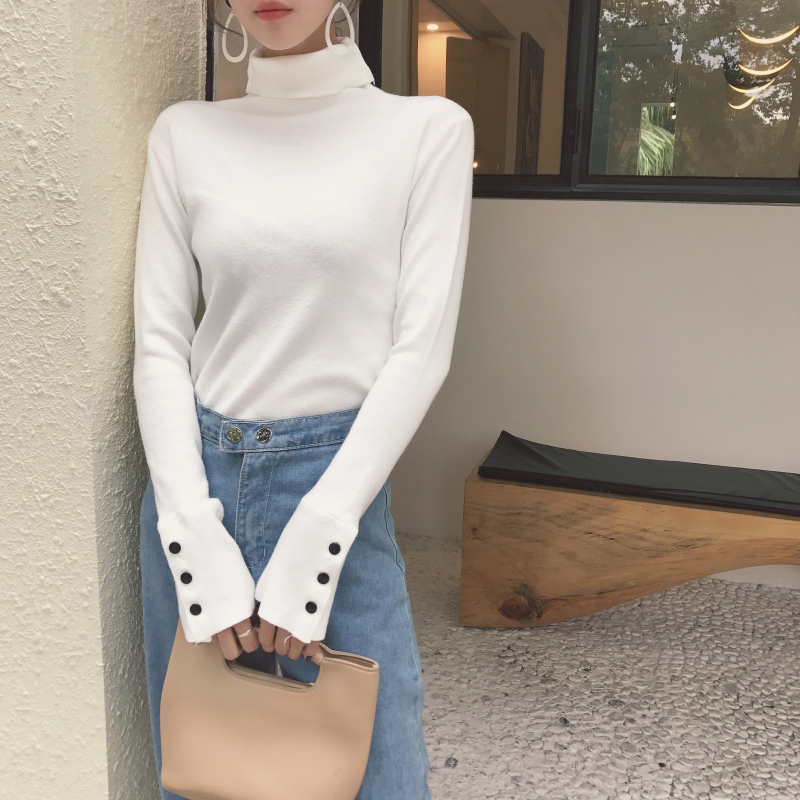 chic慵懶風套頭毛衣女2018新款秋冬純色高領針織衫女打底修身上衣