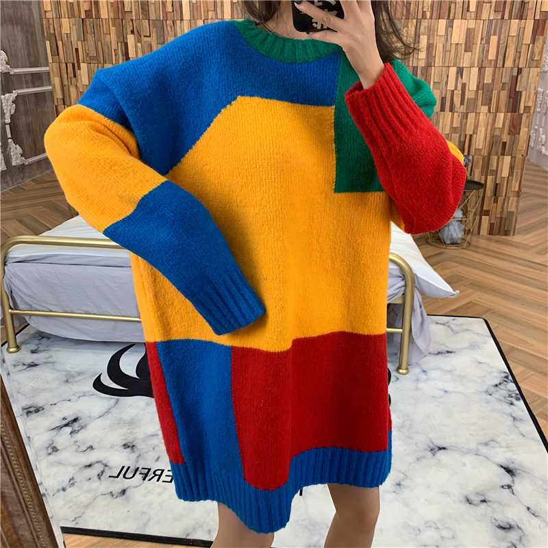 時尚圓領套頭毛衣女秋冬裝2018新款慵懶寬松針織外套學生長袖上衣