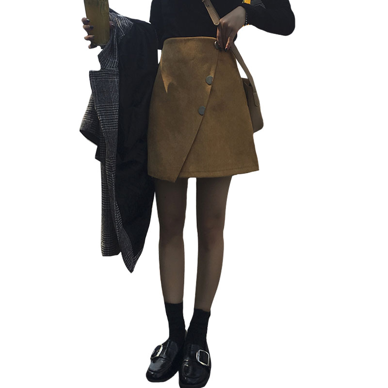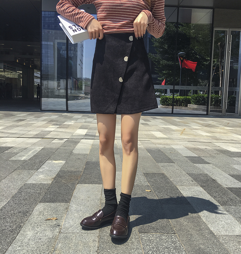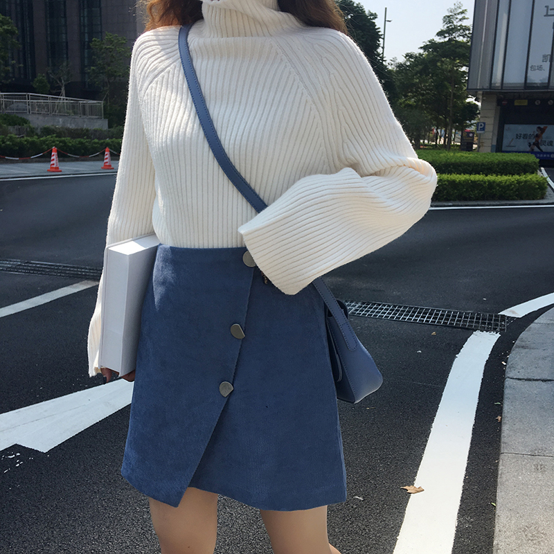 秋季女裝韓版chic復古高腰燈芯絨半身裙不規則A字裙短裙學生裙子