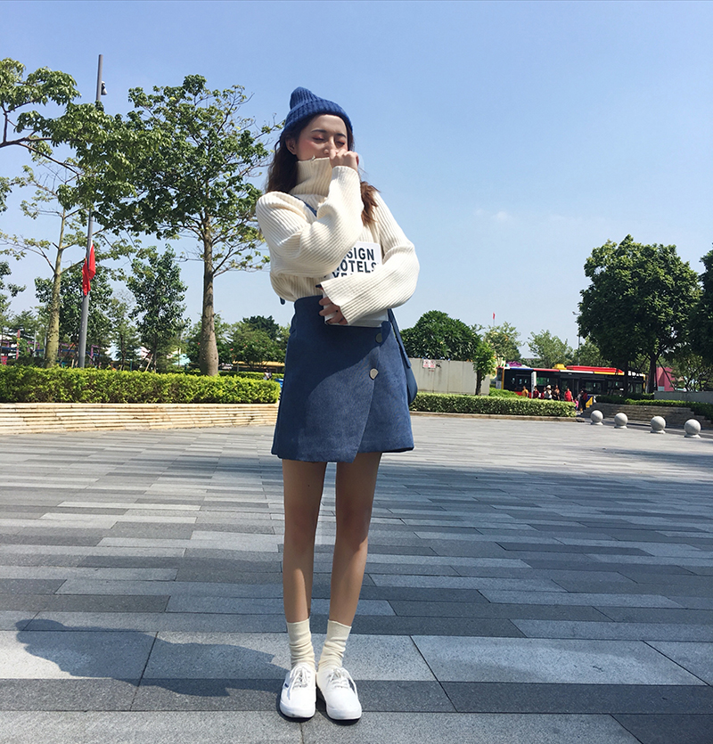 / 秋季女裝韓版chic復古高腰燈芯絨半身裙不規則A字裙短裙學生裙子