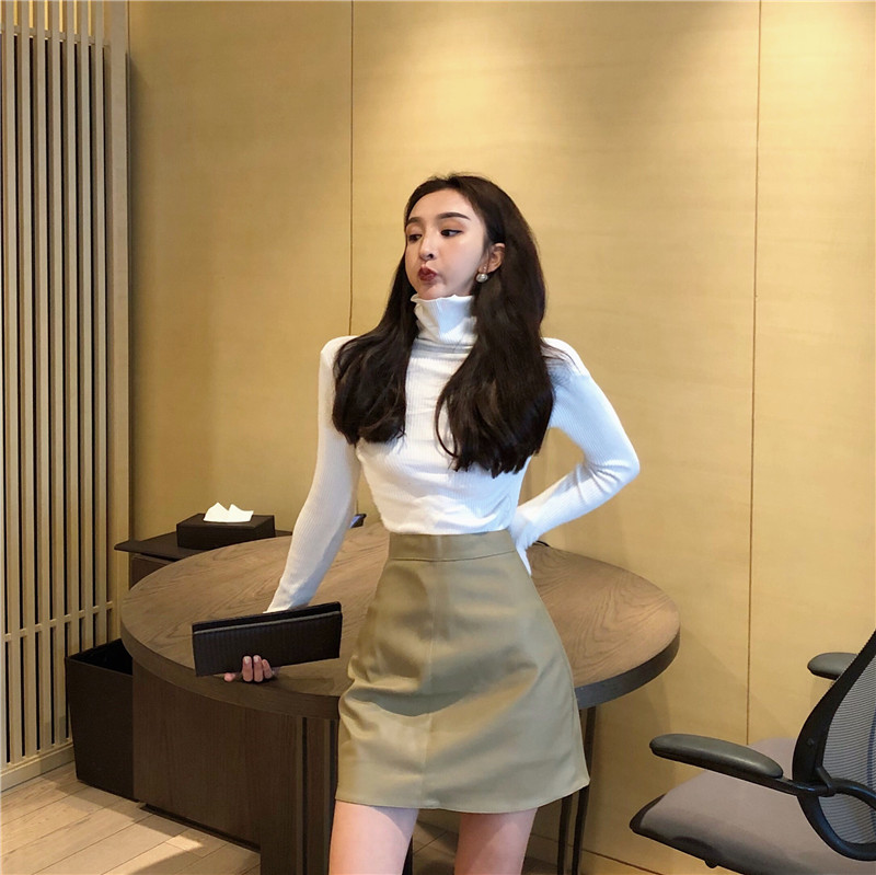 2018新款韓版秋季短裙女chic風復古簡約百搭高腰顯瘦a字半身皮裙