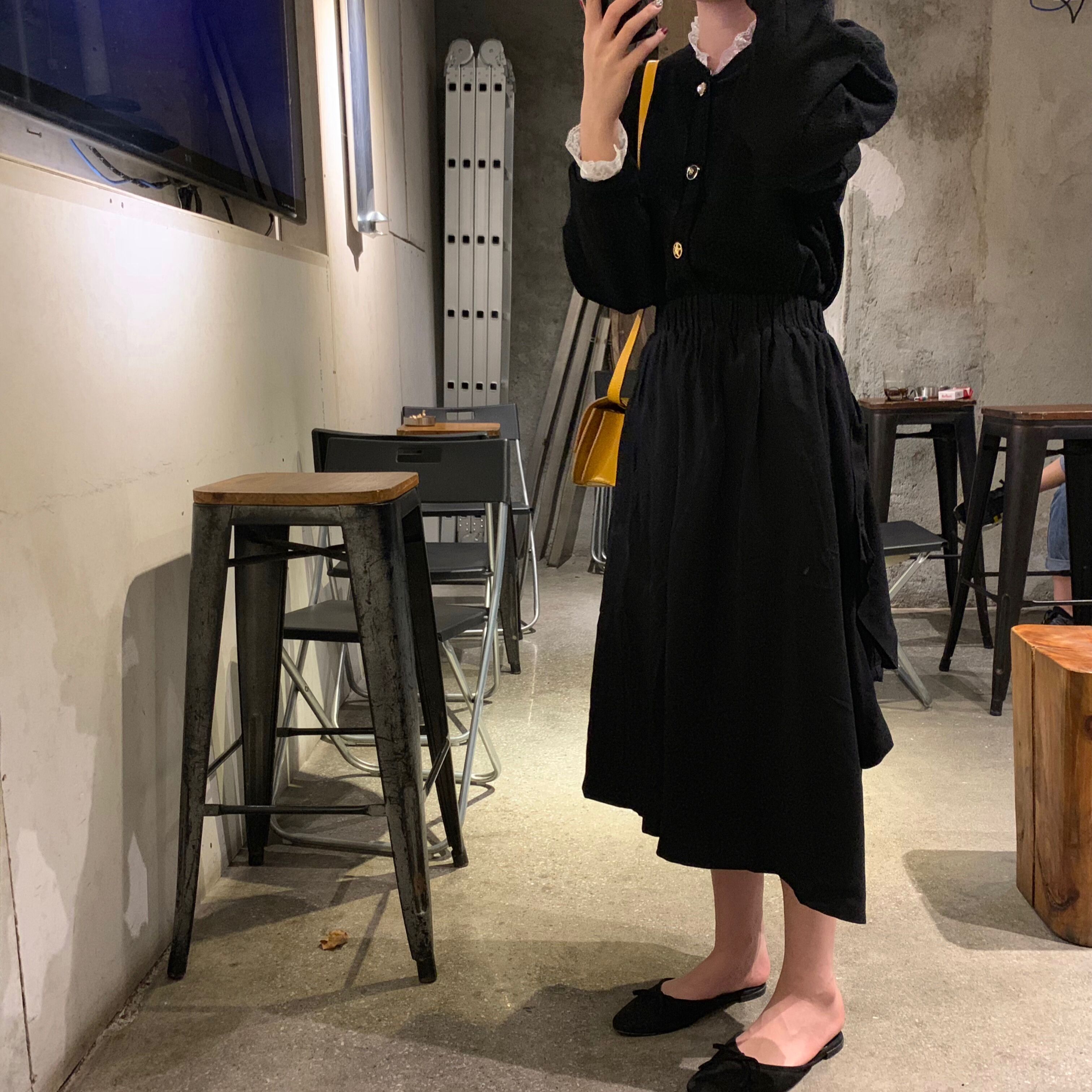 秋冬2018新款單排扣百搭波點針織衫開衫女+高腰中長款半身裙套裝