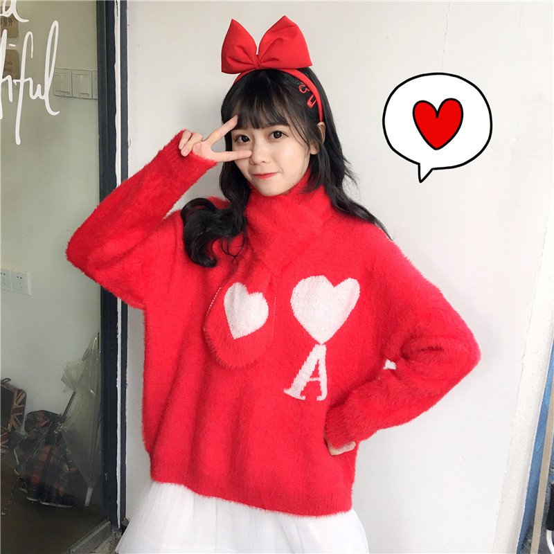 毛衣配裙子兩件套秋冬裝新款愛心提花長袖針織衫高腰顯瘦A字蛋糕