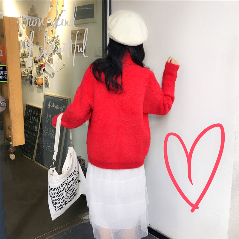 紅色毛衣|白色毛衣|白色蛋糕裙