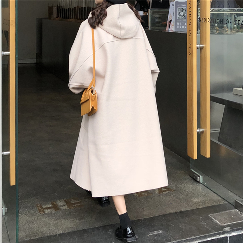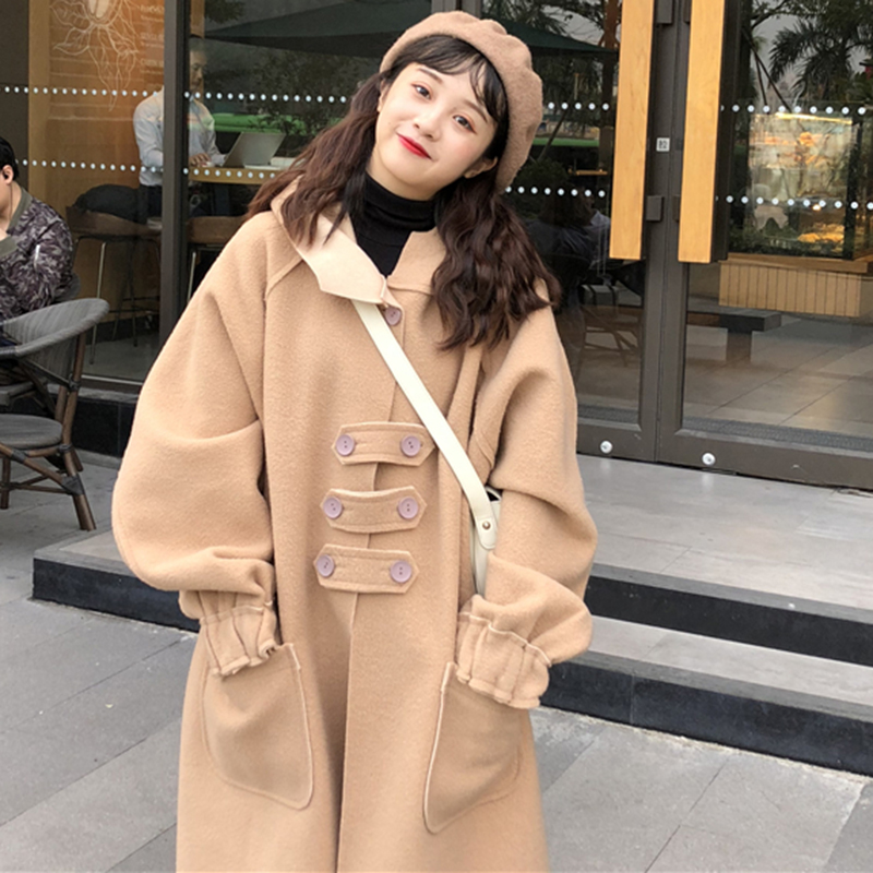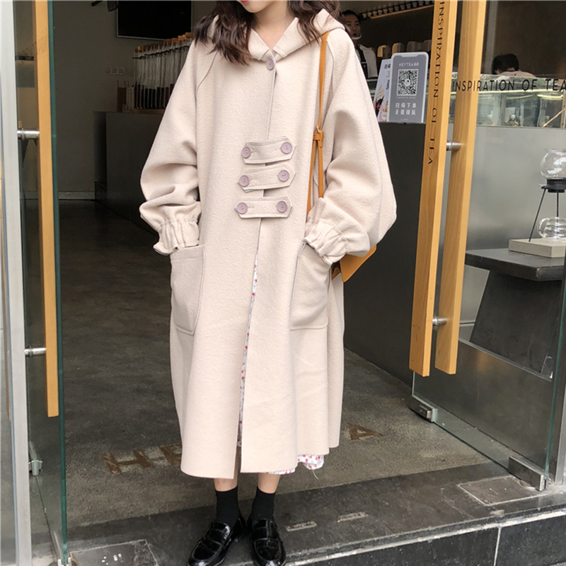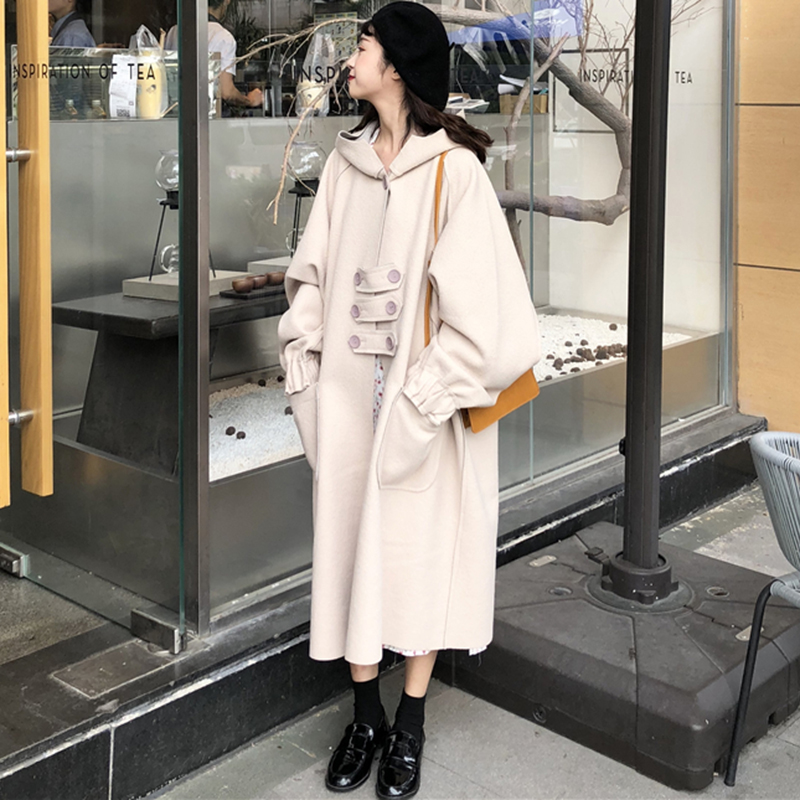 韓版2018流行毛呢外套女秋冬裝新款連帽呢子大衣學生加厚寬松風衣