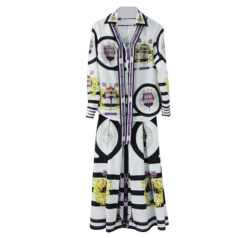 / 秋裝女2018新款韓版修身顯瘦印花襯衫時尚套裝裙氣質兩件套連衣裙