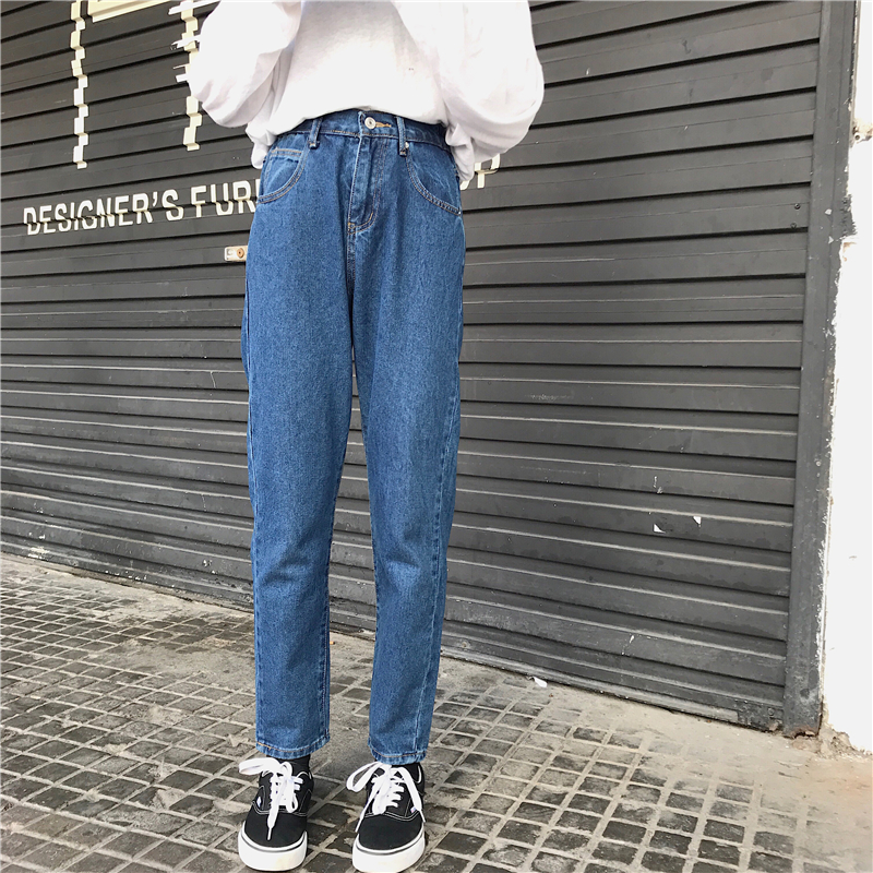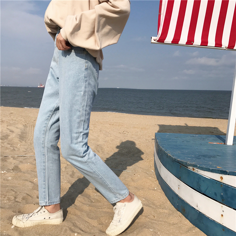 / 秋裝女裝韓版松緊腰高腰寬松顯瘦小腳褲牛仔褲長褲直筒褲九分褲潮