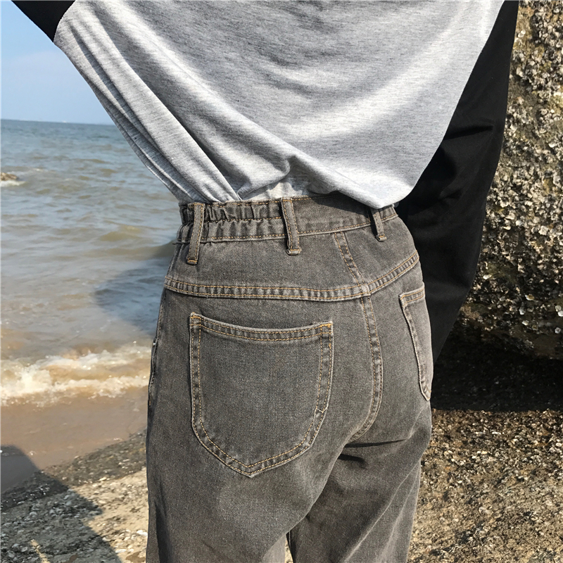 秋裝女裝韓版松緊腰高腰寬松顯瘦小腳褲牛仔褲長褲直筒褲九分褲潮