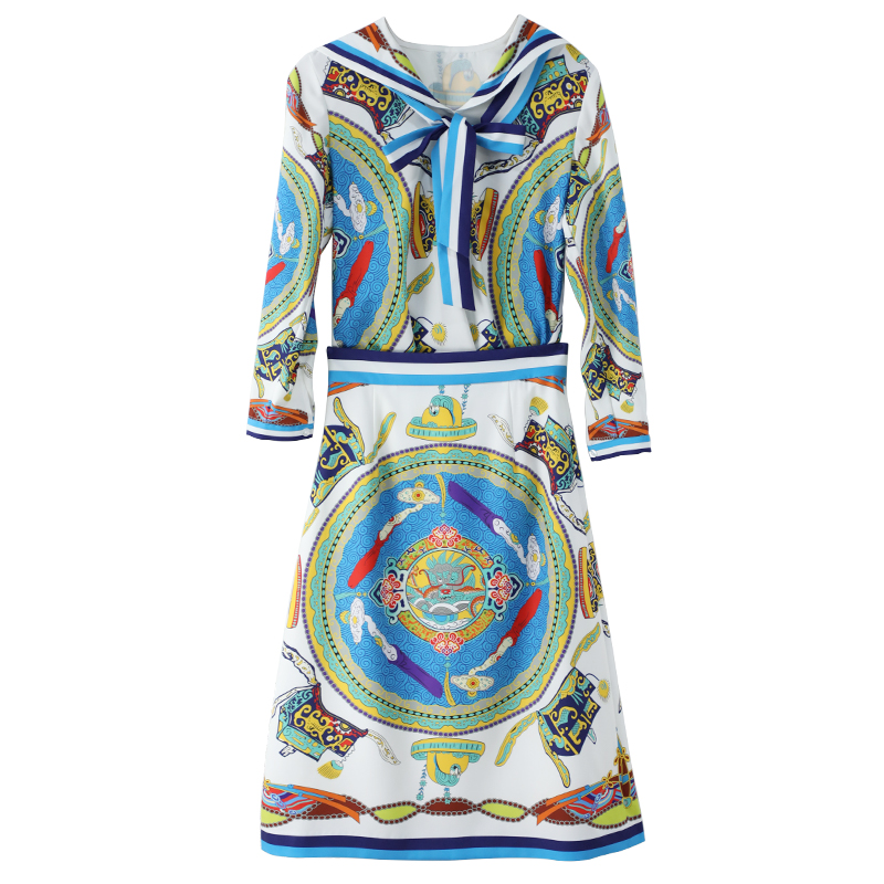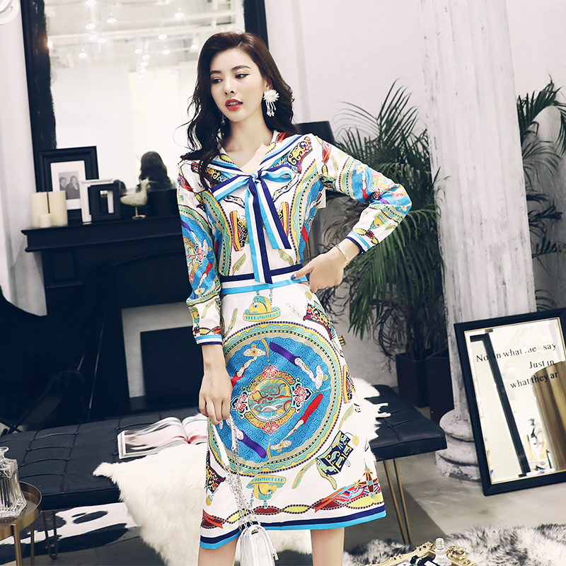 名媛印花套裝連衣裙收腰顯瘦兩件套2018秋季新款女長袖上衣半身裙
