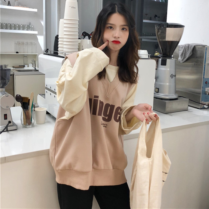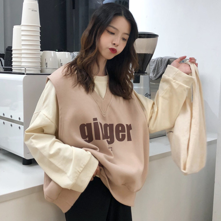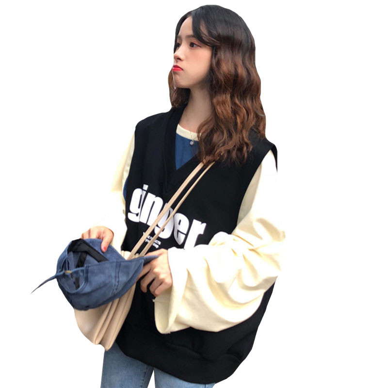 / 秋季女裝韓版學院風寬松字母印花V領套頭背心無袖馬甲上衣外套潮