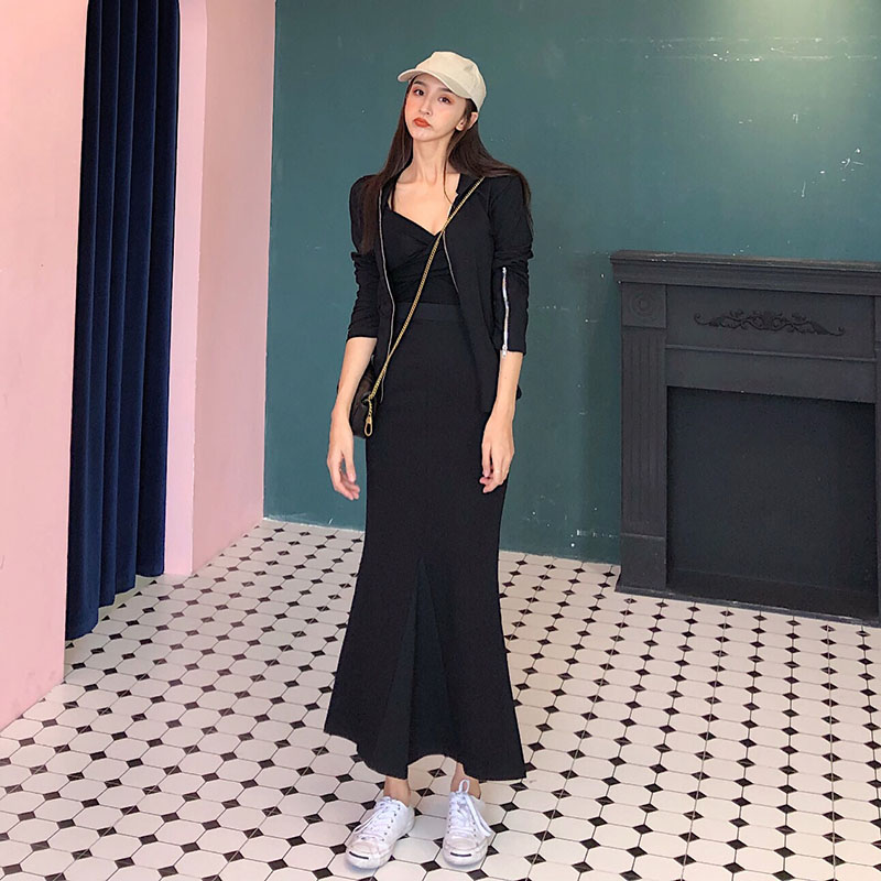 女神套裝秋冬新款復古港味超舒適衛衣開衫+魚尾半身裙時尚兩件套