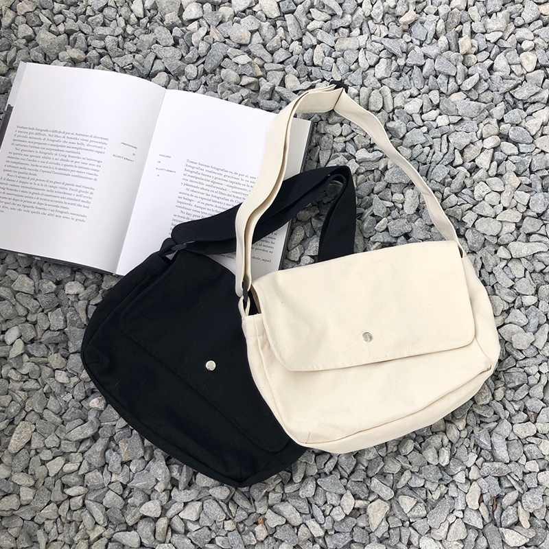 / 韓版時尚純色簡約超實用單肩包斜跨包男女書包帆布包學生女士包包